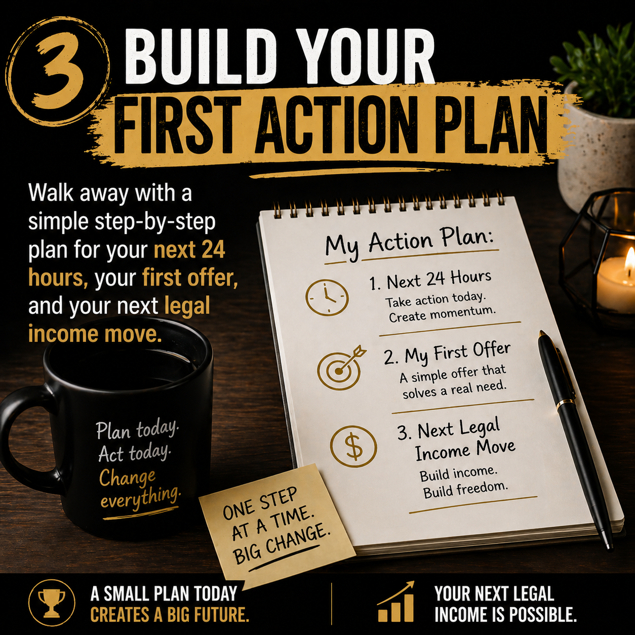 Learn how to take your next 24 hours, shape your first simple offer, and make your next legal income move without trying to figure out your whole future at once.