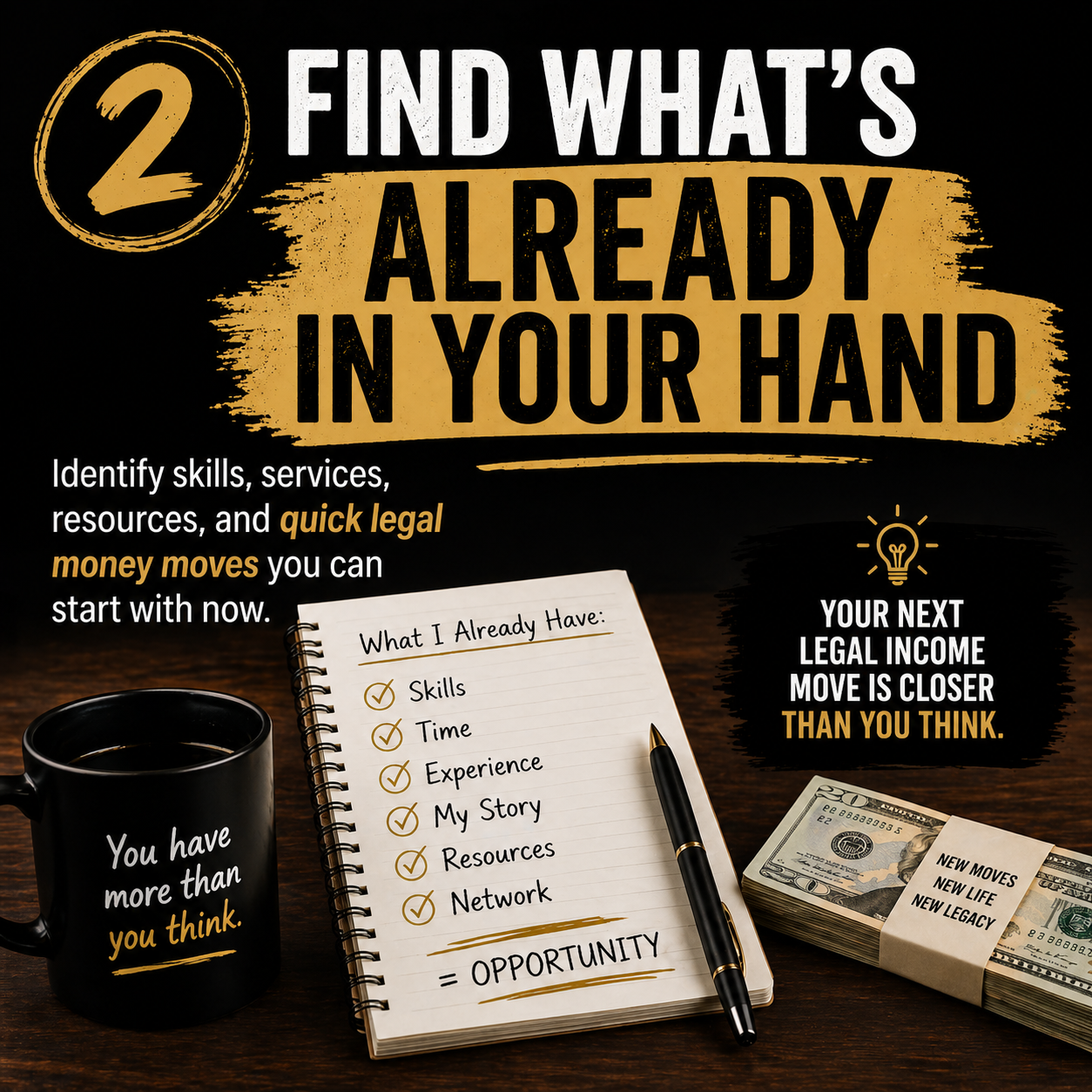Walk away with a simple step-by-step plan for your next 24 hours, your first offer, and your next legal income move.